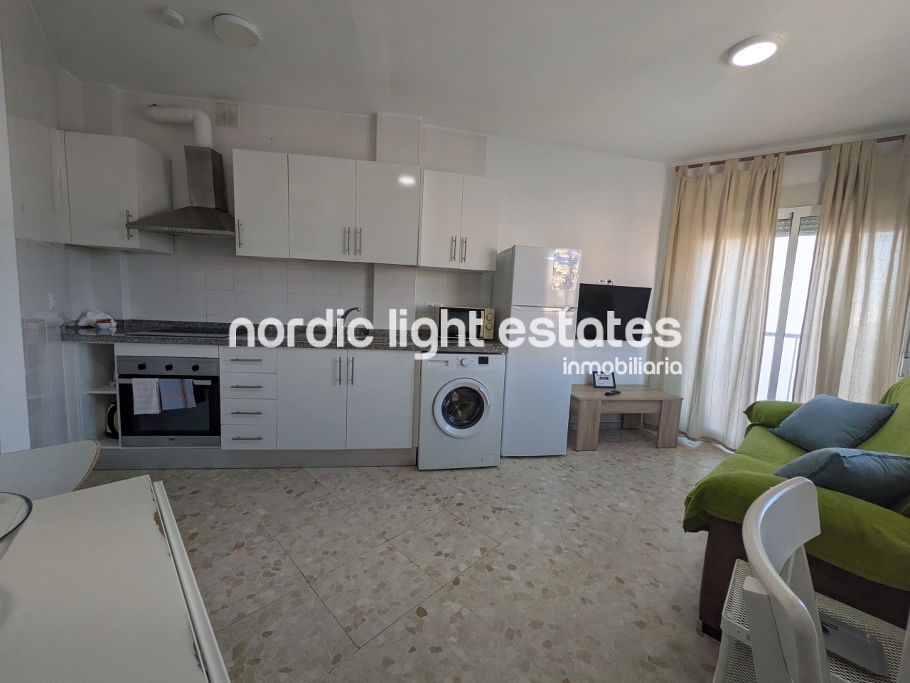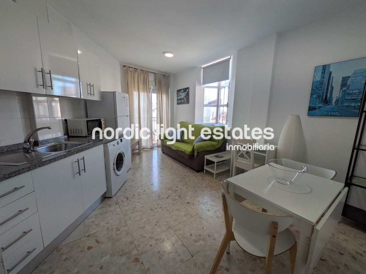 One bedroom topfloor apartment, kitchen open to the living room, it has just been just refurbished.