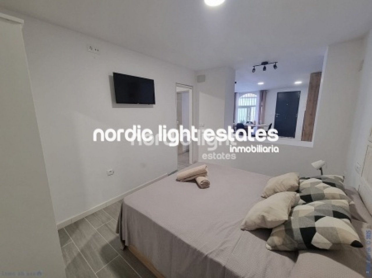 It features one bedroom partially open to the living-dining area, a fully equipped open-plan kitchen with dishwasher, and a bathroom with shower tray, all renovated with high-quality materials and impeccable finishes.