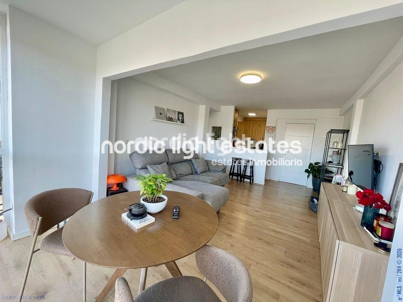 The modern property features two bedrooms with built-in wardrobes, one of which has access to a charming balcony, perfect for enjoying natural light and fresh air. The apartment also includes a full bathroom and a living-dining area with an open-plan kitchen, creating a modern, functional and inviting space for everyday living.