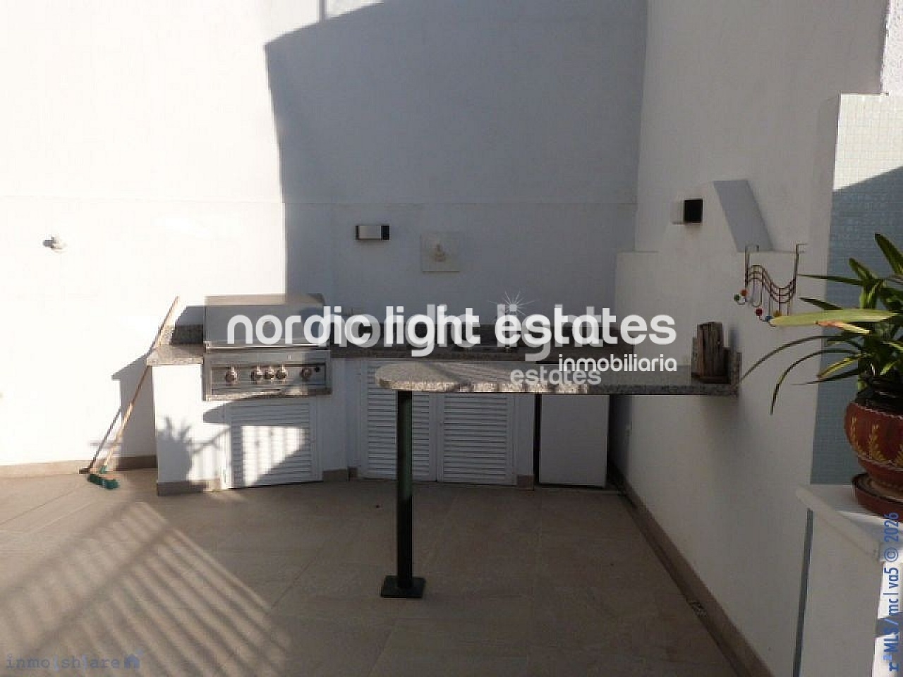 The outdoor space is designed for enjoying the Mediterranean lifestyle, featuring a fantastic 6.5 x 3.5 metre swimming pool with shower, surrounded by generous sun terraces with non-slip Italian tiles and a stylish vertical garden. There is also a fully equipped outdoor kitchen and bar area, including a fridge, rotisserie, side burner, and 5-ring gas hob, ideal for entertaining.
