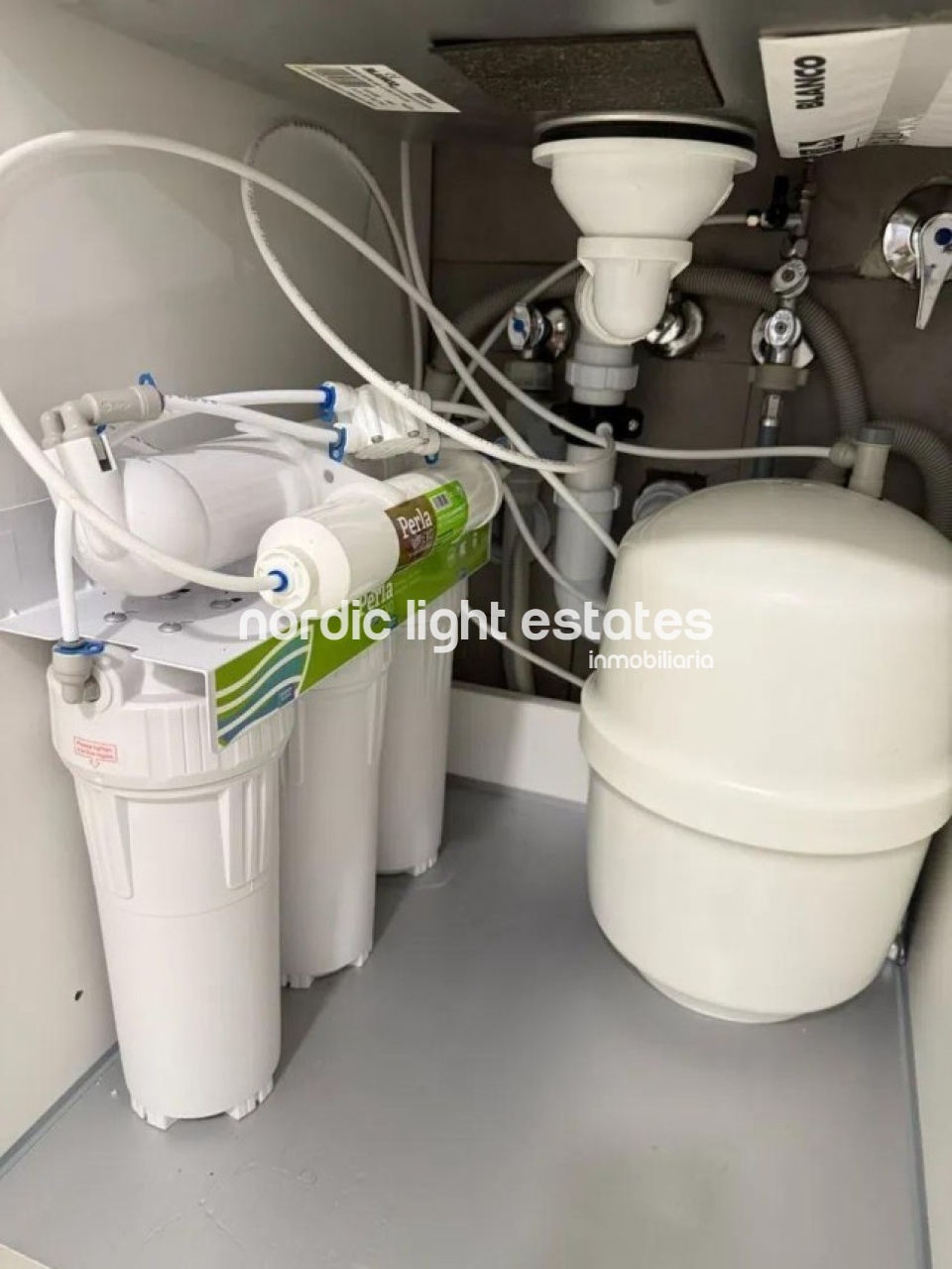 The kitchen comes fully fitted and includes an osmosis water system, modern cabinetry and a practical layout. The apartment is equipped with PVC windows with acoustic and thermal insulation, custom mosquito screens, security bars and automatic shutters. High quality solid doors and large fitted wardrobes further elevate the standard of the home
