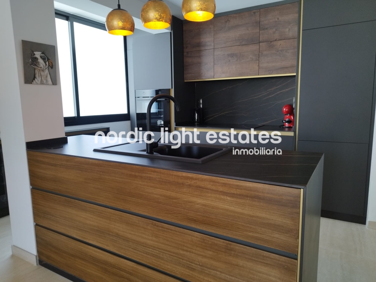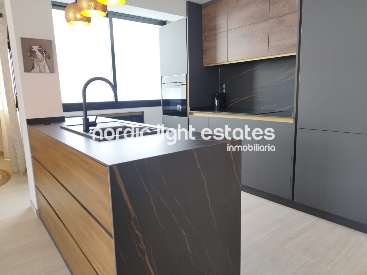 La distribución ofrece un amplio salón-comedor con aire acondicionado, integrado con una cocina abierta de diseño hecha a medida, y acceso a una terraza orientada al norte con impresionantes vistas a la montaña.