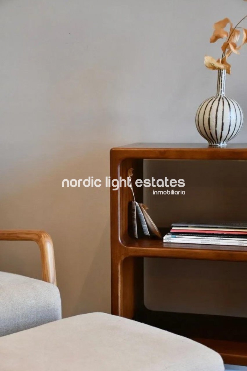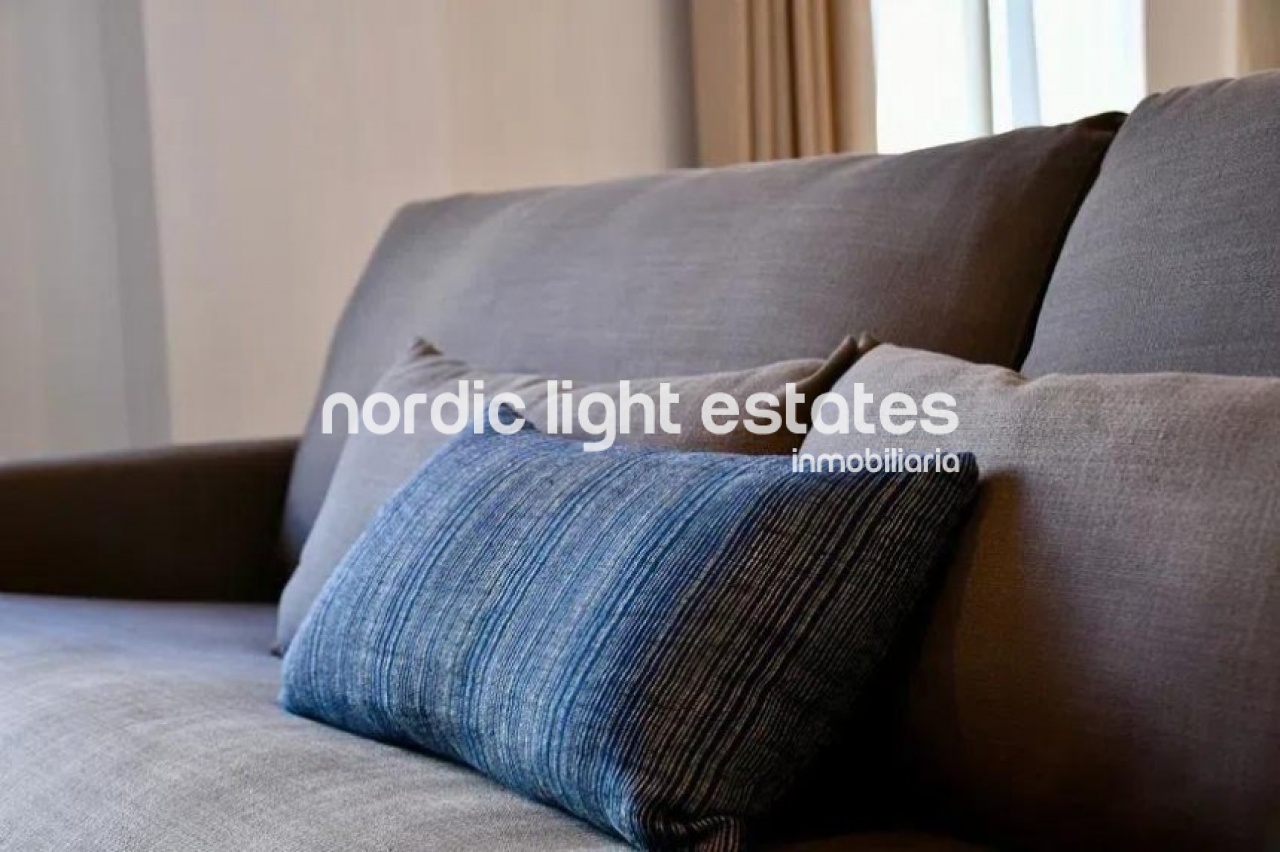 La propiedad se entrega completamente amueblada, tal y como se muestra en las imágenes, con todo el mobiliario a estrenar. Las cortinas de diseño, confeccionadas a medida con tejidos naturales de algodón y lino, cuentan con acabados de gran calidad. Asimismo, el sofá, sillón y reposapiés han sido elaborados con telas naturales, aportando una estética elegante y acogedora.