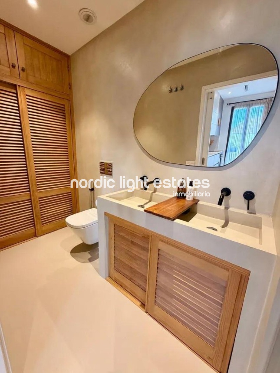 Esta exclusiva propiedad, actualmente configurado con un dormitorio aunque originalmente fue diseñado para dos habitaciones, destaca por su cuidada estética y por la calidad de sus acabados. Uno de sus elementos más distintivos es el uso de microcemento continuo en suelos y baño, un material que aporta armonía visual, amplitud y una sensación de continuidad difícil de encontrar en este tipo de viviendas.
