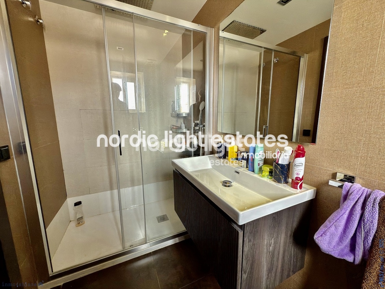 En esta planta se ubica también un gran baño con bañera de hidromasaje ducha wc y bidé ofreciendo un espacio de relax y confort de alto nivel