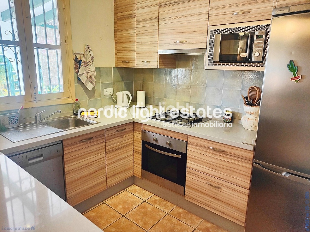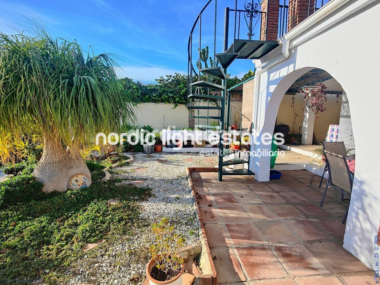 En la entrada encontramos un precioso porche cubierto ideal para comidas al aire libre. Una escalera de caracol conduce a una terraza en la azotea con vistas abiertas a la costa y a Nerja.