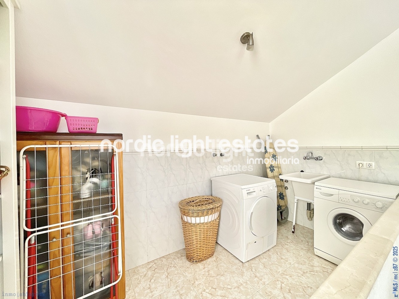 La tercera planta ofrece una gran terraza en forma de L de 25 m², perfecta para disfrutar del sol y de las vistas despejadas, así como una zona cubierta acondicionada como lavadero