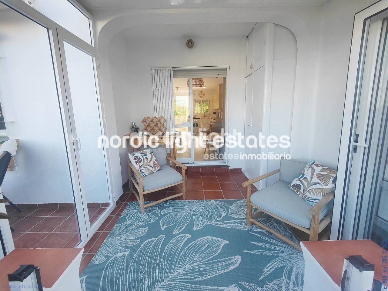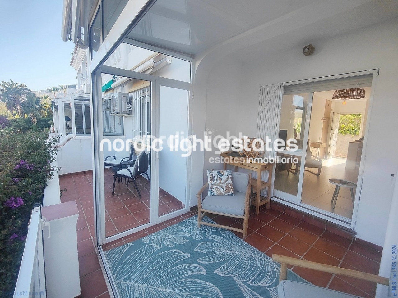 Gracias a su excelente orientación suroeste, la vivienda disfruta de abundante luz natural y agradables vistas a los jardines, creando un ambiente luminoso y acogedor. El espacio exterior es uno de sus grandes atractivos, con una terraza cubierta perfecta para descansar a la sombra y una segunda terraza abierta, ideal para comidas al aire libre y disfrutar del sol de la tarde.