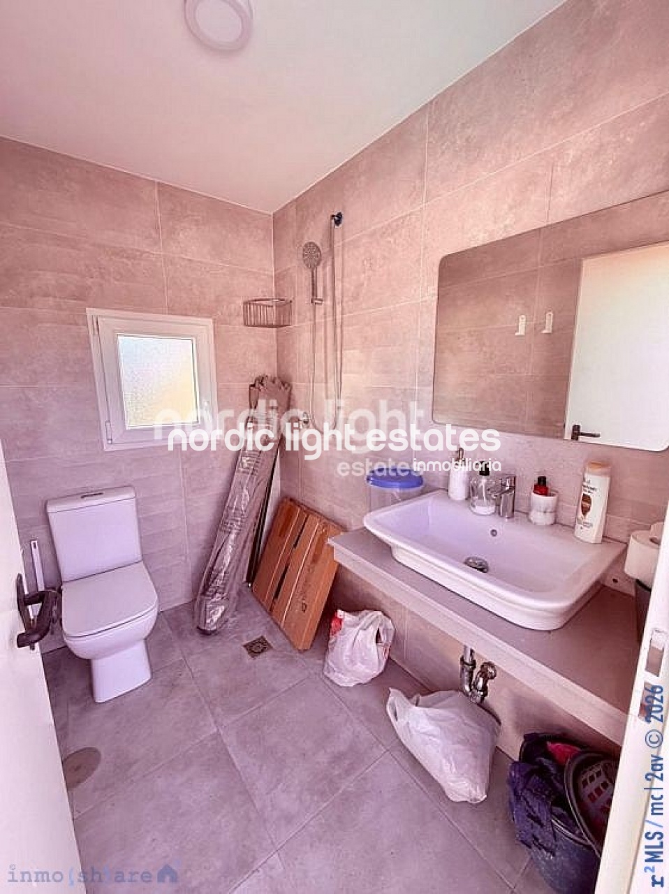 Dispone de cuatro dormitorios muy amplios, entre ellos un dormitorio principal tipo suite con vestidor privado y un elegante baño integrado. La distribución interior está diseñada para la comodidad del día a día, con tres habitaciones en la planta superior y una adicional en la planta baja junto a un baño completo, ideal para invitados o personas con movilidad reducida
